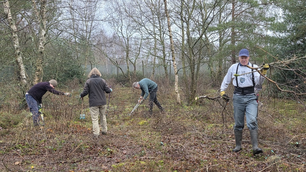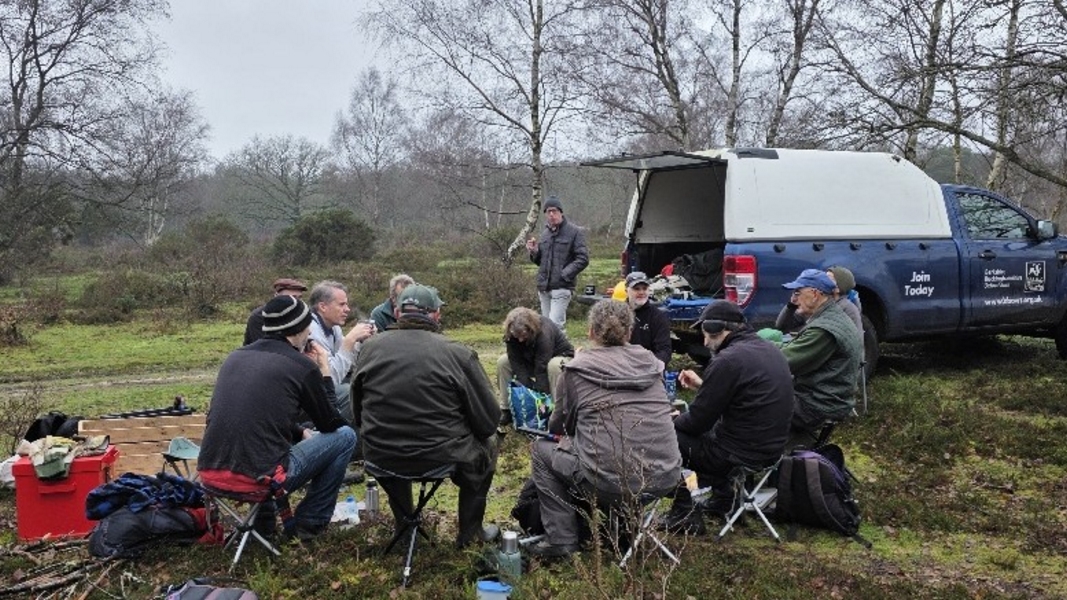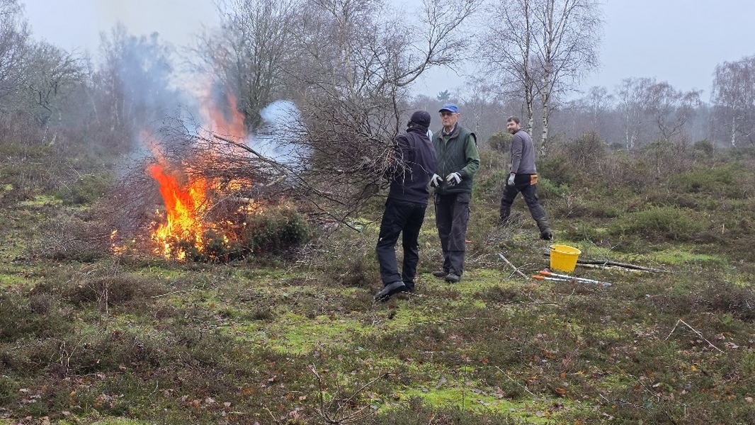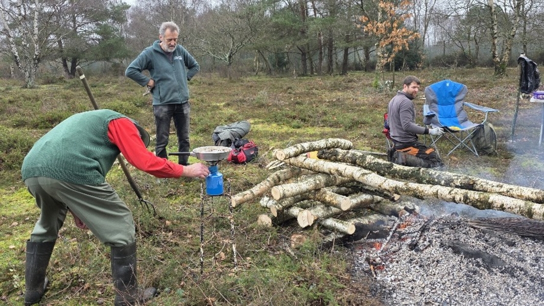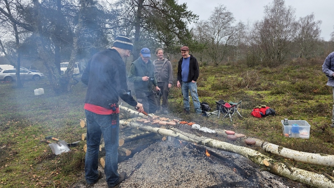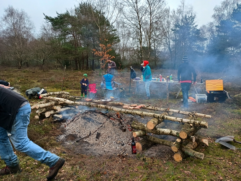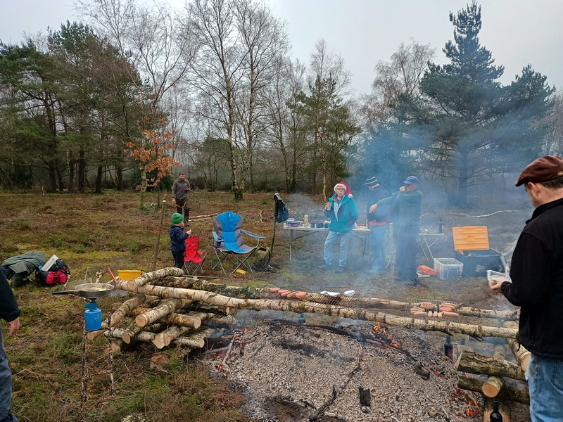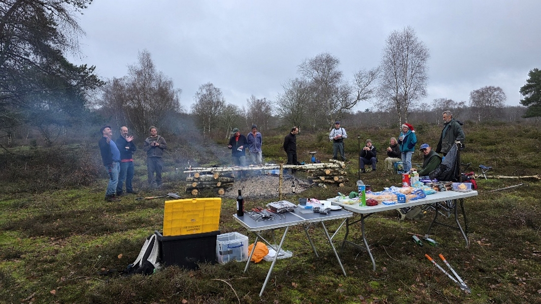 Scrub clearance on Sandleford Heath, Christmas barbecue