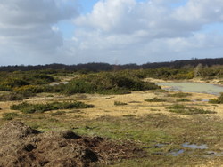 The dry heathland is a complex mixture of heather, dwarf gorse and gorse, the latter of which forms dense areas where Dartford warbler reside most of the year. Lichen heath is rare in this compartment. In isolated areas along the middle of the compartment, wet flushes reveal areas where heath grass, oval sedge, soft rush and hard rush can be found. One flush area has common rush, lesser spearwort and compact rush. This area is also frequently used by roosting jack snipe.