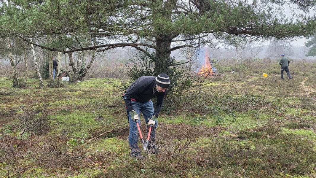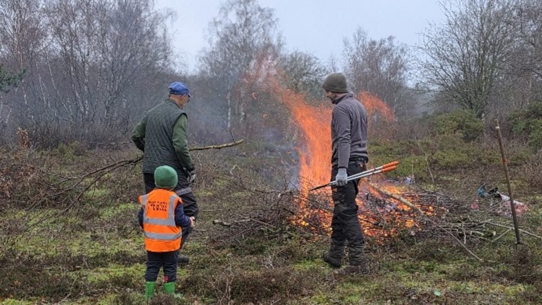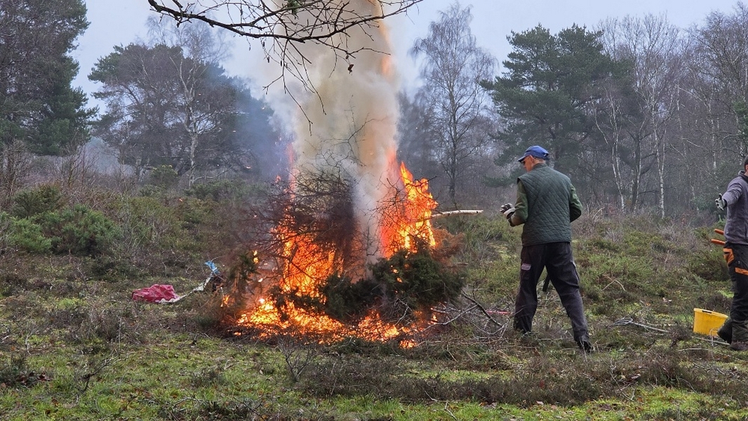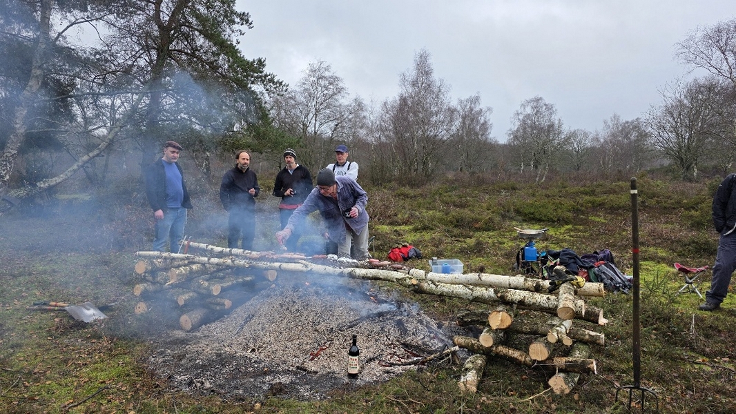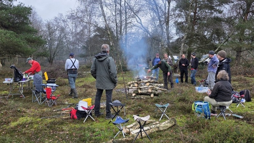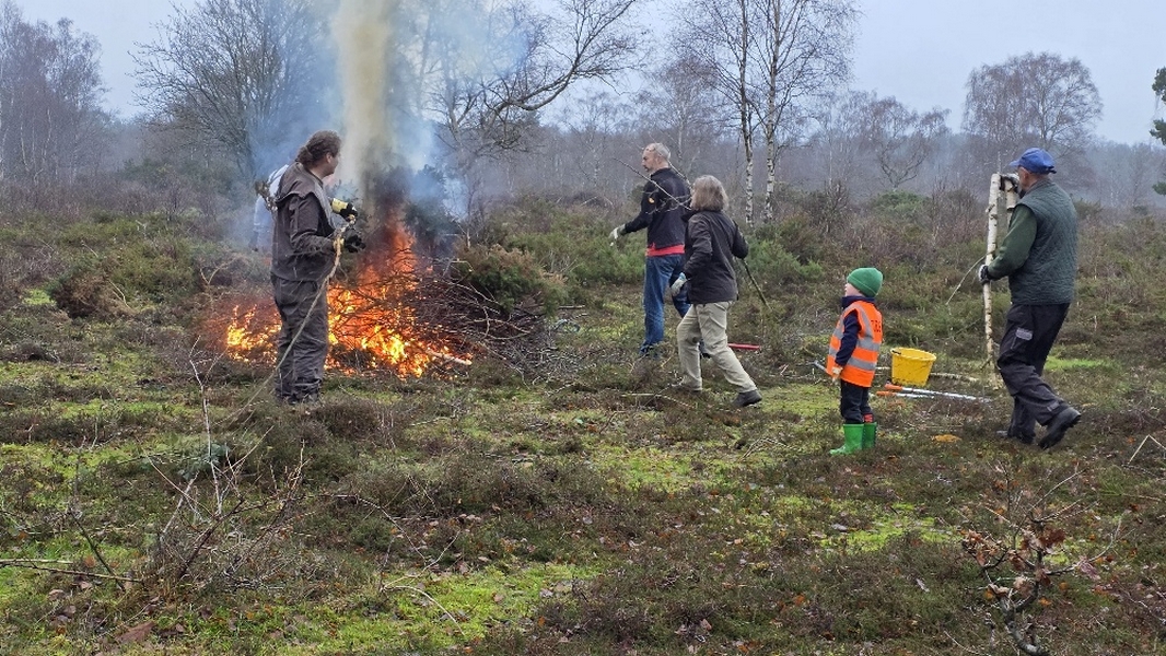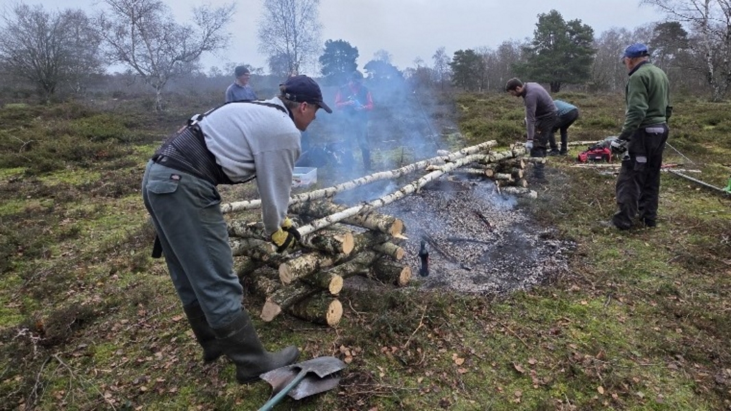 Scrub clearance on Sandleford Heath, Christmas barbecue